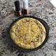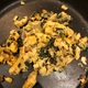 Eggs with frozen spinach and mushrooms.