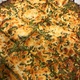 Cheese topped vegetable bread.