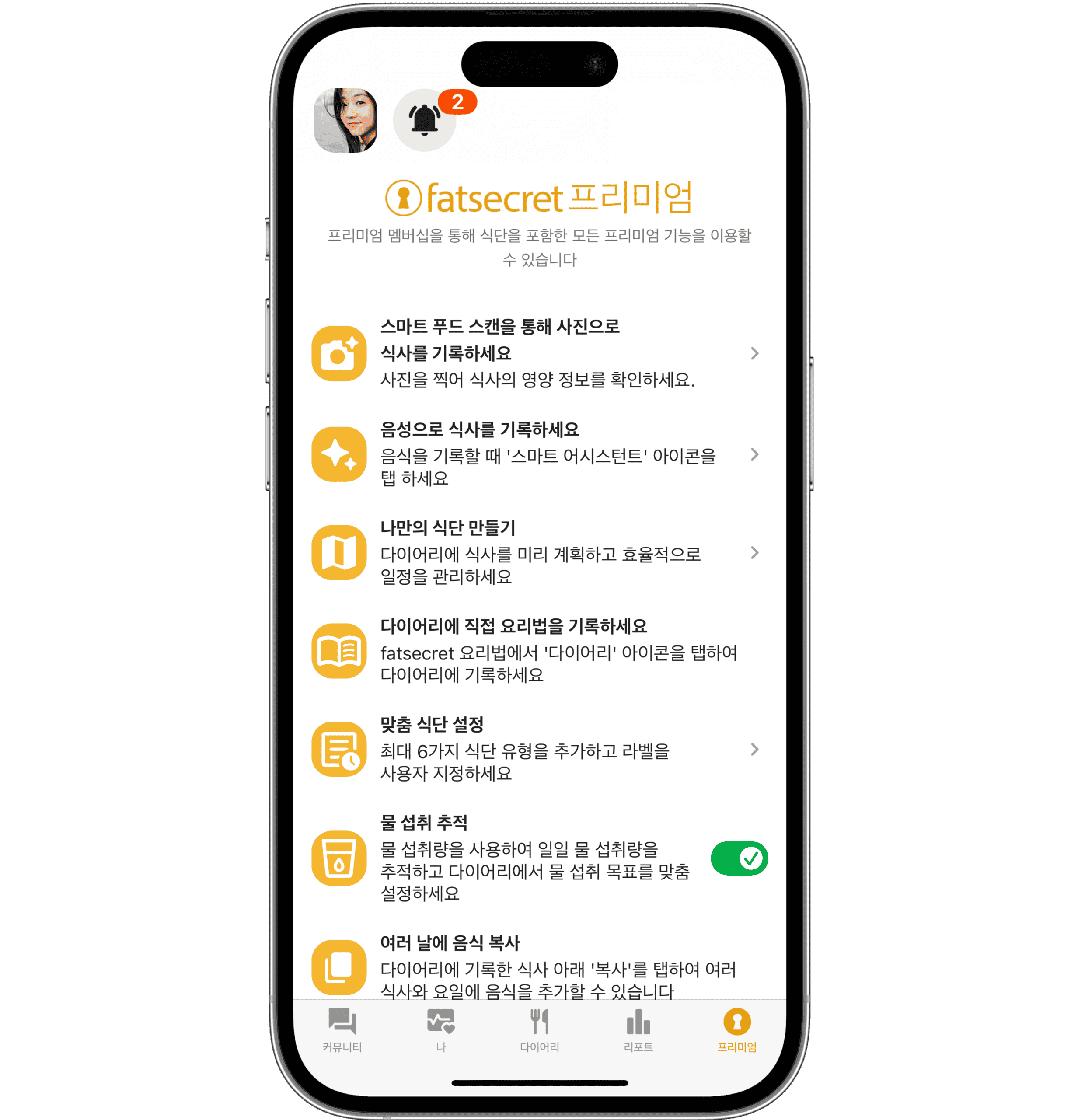 fatsecret 앱과 주요 기능은 모두 무료로 이용할 수 있습니다. 여기에는 세계 최대 식품 및 영양 데이터베이스 기반의 칼로리 및 매크로 추적, 체중 기록, 바코드 스캐너, 커뮤니티 접근 등이 포함됩니다. 추가 도구와 지원이 필요하다면, fatsecret Premium을 앱 내 유료 업그레이드로 이용할 수 있으며, 영양사 설계 식단, 고급 추적 기능, 물 섭취 추적기, 학습 센터 등 다양한 기능을 제공합니다. Premium의 가격 및 일부 기능은 지역에 따라 다르며 앱에서 직접 확인할 수 있습니다.